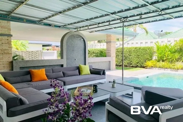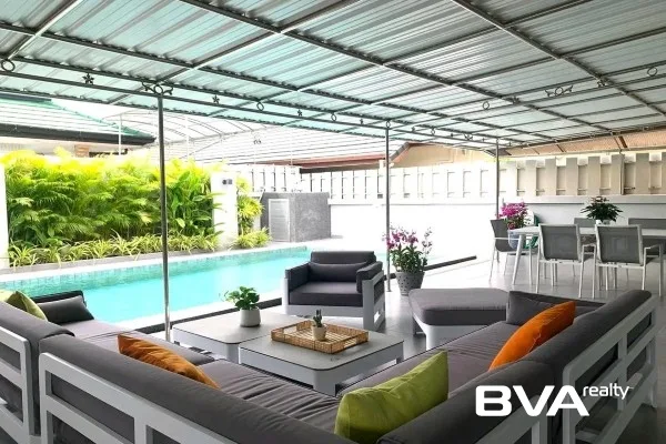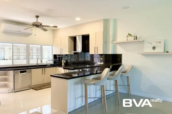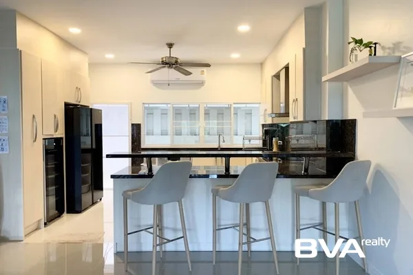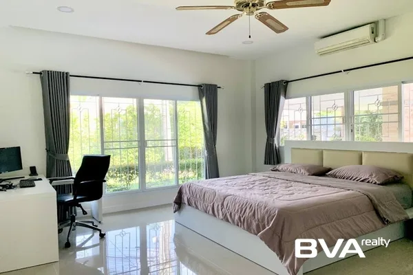 A quite stunning fully furnished 3 Bedrooms, 2 Bathrooms house for rent in Pattaya in SP Village 5 housing community with the approximate living area of 220 square meters located in peaceful East Pattaya area. The property has features such as 2 kitchen, there is parking for 2 or more vehicle available, it is fully furnished and it has 4 air conditioning units, with the monthly rental price only ฿85,000.